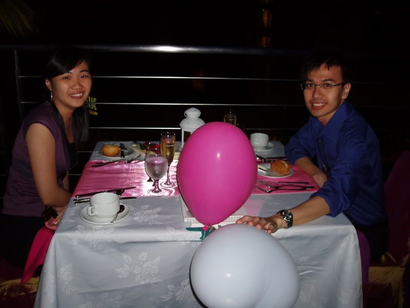 by the time the movie ended, we went baq to our hotel to have the diner package.. we choose by the poolside diner.. the atompshere stil nt bad.. quite windy there oso.. haha.. my hair all in a mess lorz..