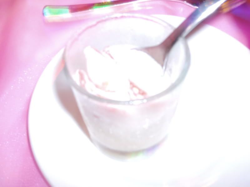 there are two types of dessert.. one is ice-cream wrapped with choco.. the other one is coconut wif ice-cream.. duno y the waiter give mi the latter one lorz.. i dun like coconut.. so i change wif deardear.. haha.. my fav choco!!!