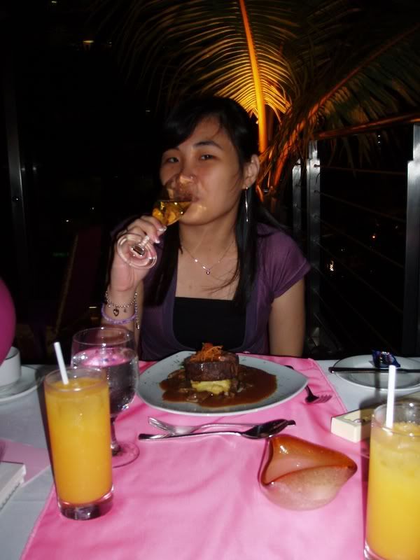 by the time the movie ended, we went baq to our hotel to have the diner package.. we choose by the poolside diner.. the atompshere stil nt bad.. quite windy there oso.. haha.. my hair all in a mess lorz..